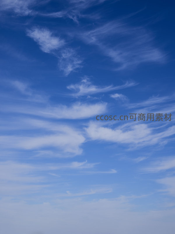 画面捕捉到高空中稀薄云层在深邃蓝天下缓缓流动的瞬间,云絮轻盈透明,层次分明,营造出宁静开阔的视觉感受。