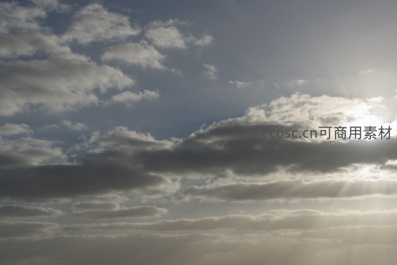 蓝天白云间,阳光倾泻如瀑布般壮丽