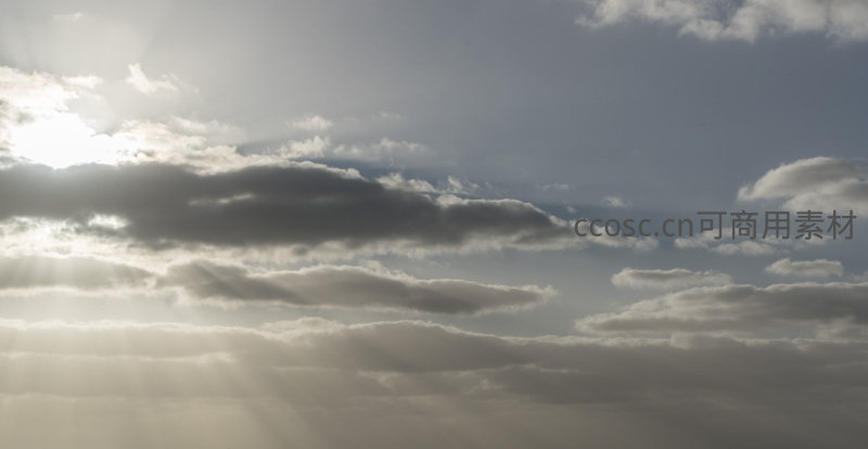 厚重的云层被阳光穿透,形成壮观的耶稣光,洒向大地,营造出神圣而宁静的氛围,令人感受到自然的壮美与力量。