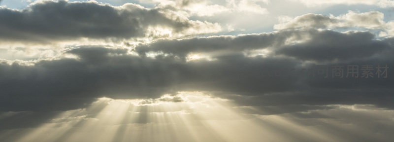 广阔的天空中,云层翻涌,阳光如利剑般刺破云层,形成一幅宏大而富有戏剧性的光影画卷,展现了大自然无与伦比的创造力。
