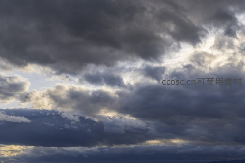 从低角度仰视拍摄,云层厚实且富有层次,阳光在云块边缘形成明亮光晕,凸显云朵的立体结构与动态质感。