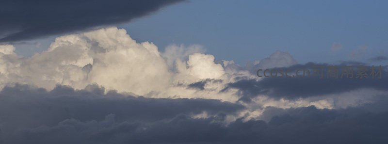 纯净蓝天下,洁白蓬松的积云与下方深沉的暗云形成鲜明对比,展现天空瞬息万变的色彩与形态之美。