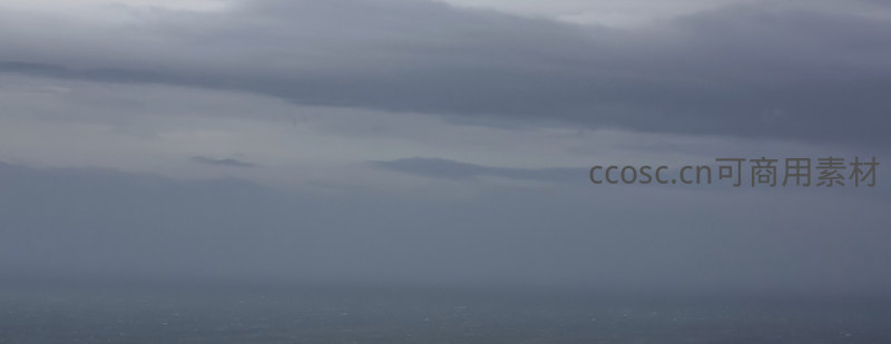 灰蒙蒙的天空与大海融为一体,薄雾弥漫,视线模糊,营造出一种空旷、静谧且略带忧郁的意境。
