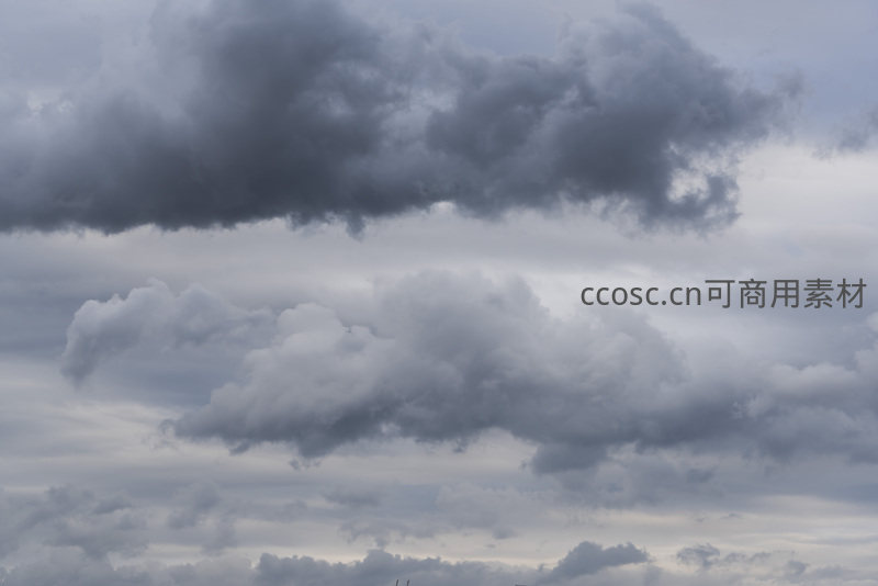 厚重的乌云层层堆叠,遮蔽了大部分天空,预示着一场即将到来的暴雨。灰暗色调营造出压抑而壮观的自然景象。