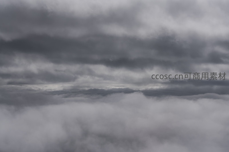 低垂的乌云与升腾的云雾交织成一片混沌世界,灰调光影渲染出沉静而紧张的情绪,仿佛时间凝固在风暴来临前的瞬间。