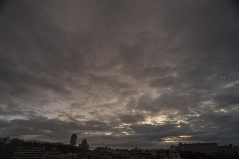 阴云笼罩的城市剪影黄昏