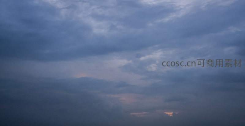 深蓝色的厚重云层在黄昏时分缓缓流动,缝隙中透出温暖的橙红色光芒,营造出宁静而神秘的视觉效果。