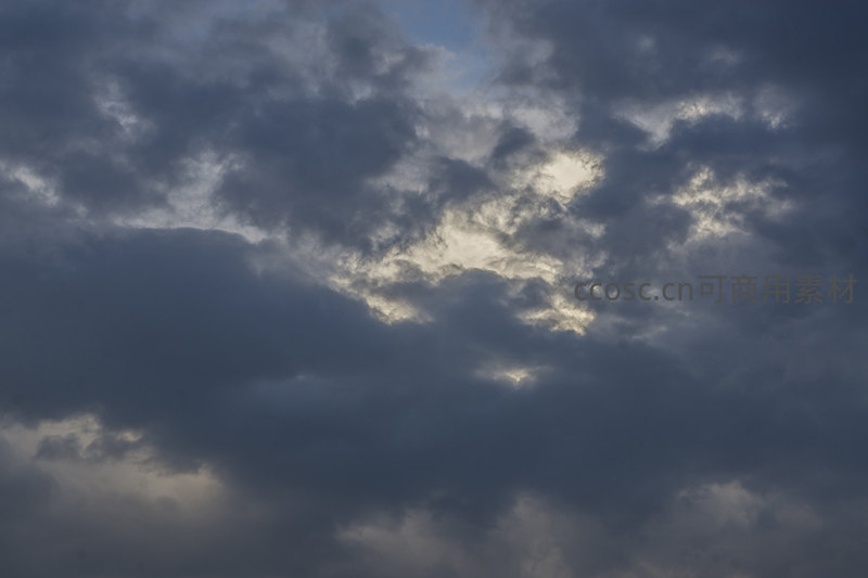 灰暗厚重的云层几乎遮蔽了整个天空,但一缕明亮的光线顽强地从云缝中透出,如同希望的象征,为这片沉静的天幕增添了一丝温暖与生机。