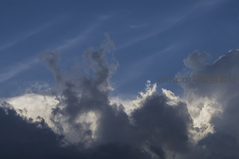 清澈蔚蓝的天幕下,蓬松洁白的云团与深灰云影交织,线条柔和飘逸,仿佛触手可及,带来开阔舒畅的视觉享受。