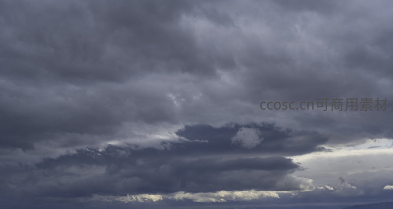 大片云团在高空激烈运动,深灰与浅白交织,形成强烈的明暗对比。阳光从缝隙中洒落,为阴郁的天空增添戏剧性美感,展现自然力量的壮丽瞬间。