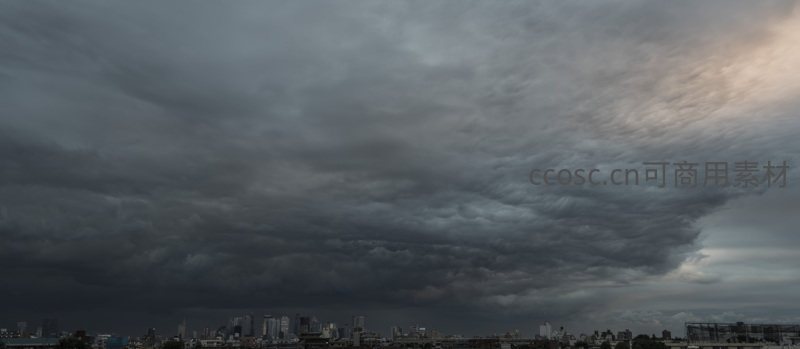 巨云如盖覆都市,天光一线透云隙
