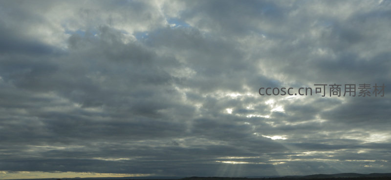 厚重云层中裂开缝隙,金色阳光如利剑般穿透而下,照亮大地,带来温暖与希望,象征光明终将战胜黑暗。