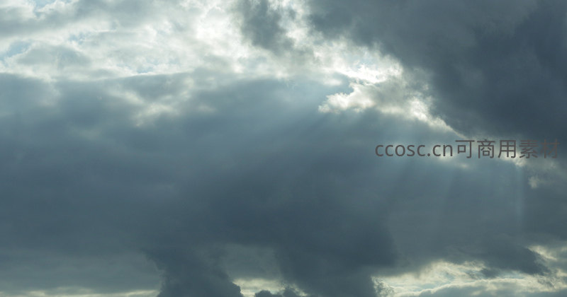 厚重的乌云间裂开一道缝隙,金色的阳光如利剑般穿透云层,洒向大地,营造出戏剧性与神圣感并存的壮丽天象。