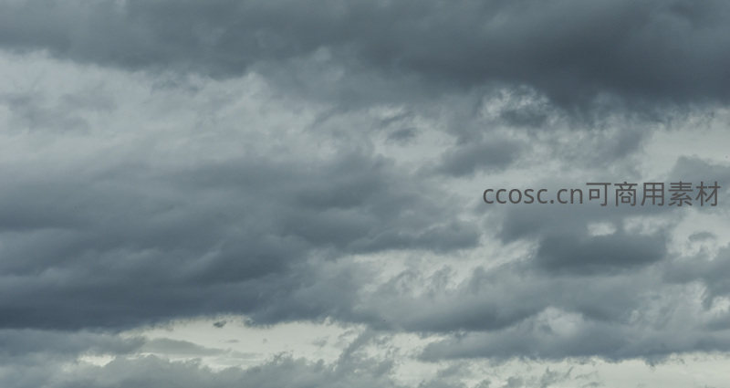 天空被深灰色的积雨云完全占据,云层厚重且形态复杂,边缘模糊,透露出风暴即将来临前的紧张与压抑气氛。