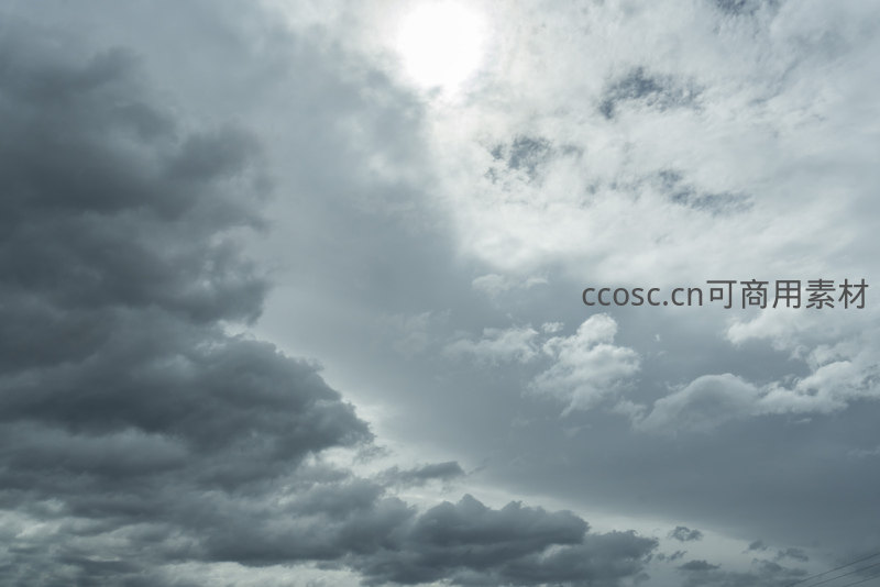 太阳被薄云遮挡,光线透过云隙散射开来,形成一片柔和而均匀的光晕,云朵边缘被镀上银边,宁静而富有诗意。