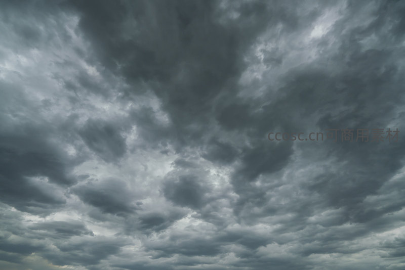 大片积雨云在空中剧烈翻滚,形态变幻莫测,深灰色调充满张力,仿佛蕴藏着巨大的能量,展现了大自然不可抗拒的磅礴气势和原始美感。