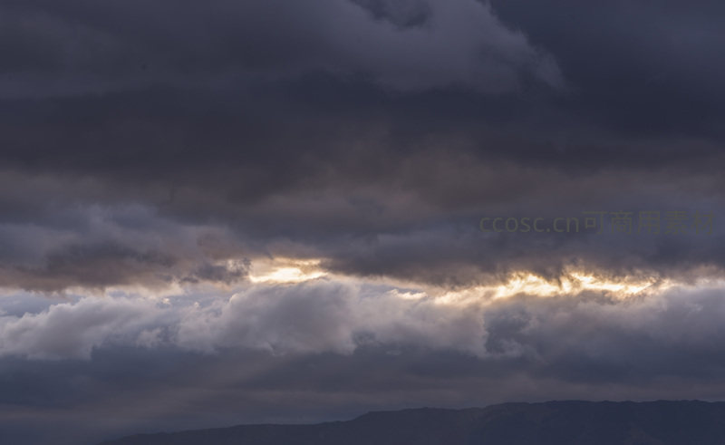 厚重的乌云笼罩天际,阳光从云层缝隙中透出金色光芒,形成强烈的明暗对比,营造出戏剧性的自然氛围。
