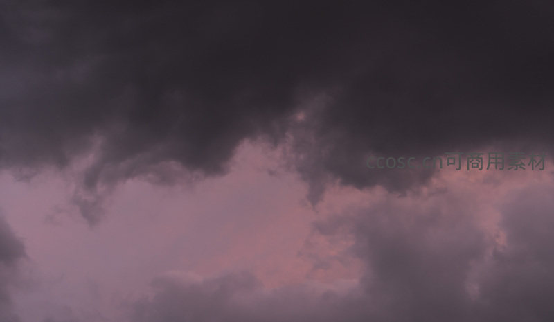深沉的乌云如巨幕般垂落,下方透出梦幻般的粉紫色光晕,光影交错间充满张力,捕捉了天气变幻前最富戏剧性的诗意时刻。