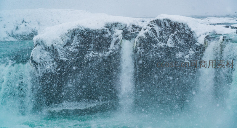 深邃的峡谷被厚厚的冰雪覆盖,巨大的瀑布从高处坠入碧潭,发出震耳欲聋的轰鸣,仿佛是大自然奏响的一曲雄浑冬日交响乐。
