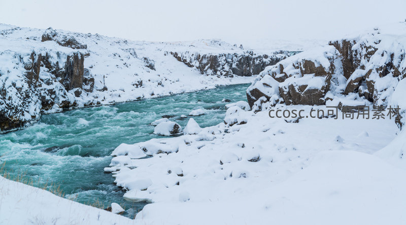雪覆峡谷碧水奔流