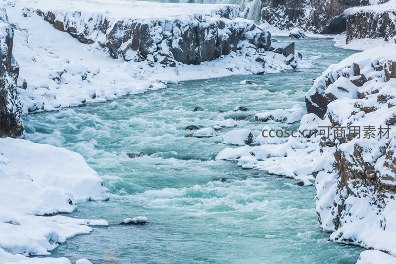 雪原峡谷中的蜿蜒碧河