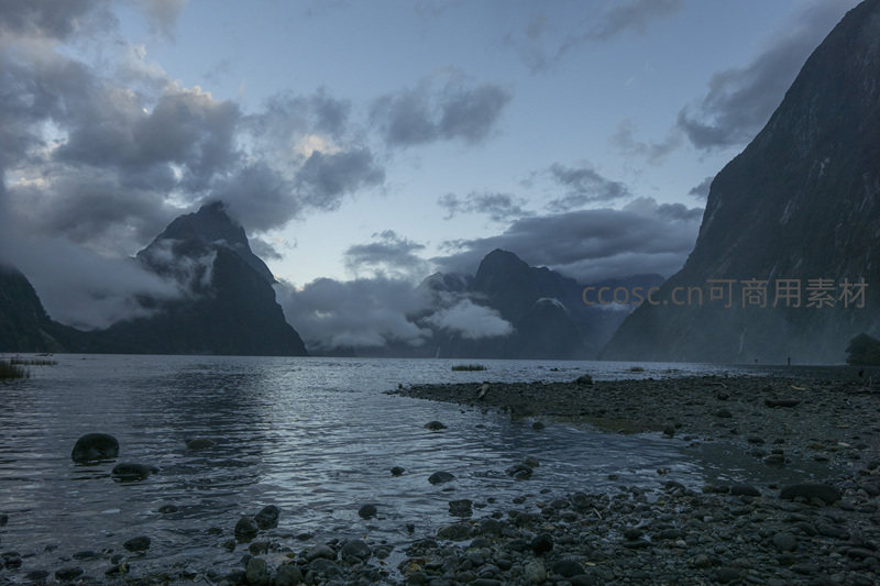 薄暮时分的峡湾全景与云海奇观