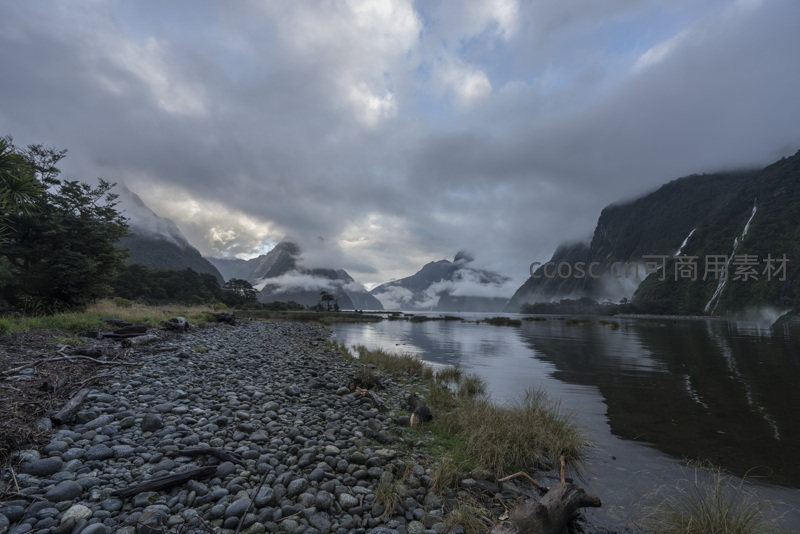 卵石河岸旁的云海峡谷