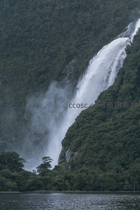 巨大的瀑布自陡峭山崖奔腾而下,激起漫天水雾,冲击着下方碧绿植被覆盖的岩壁,气势磅礴震撼人心。