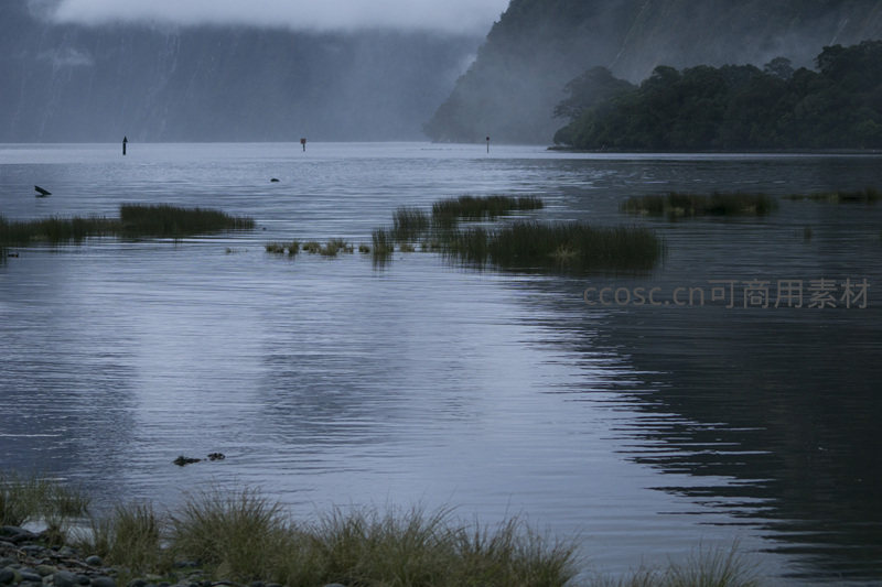 暮色湖面倒影山影水草轻摇