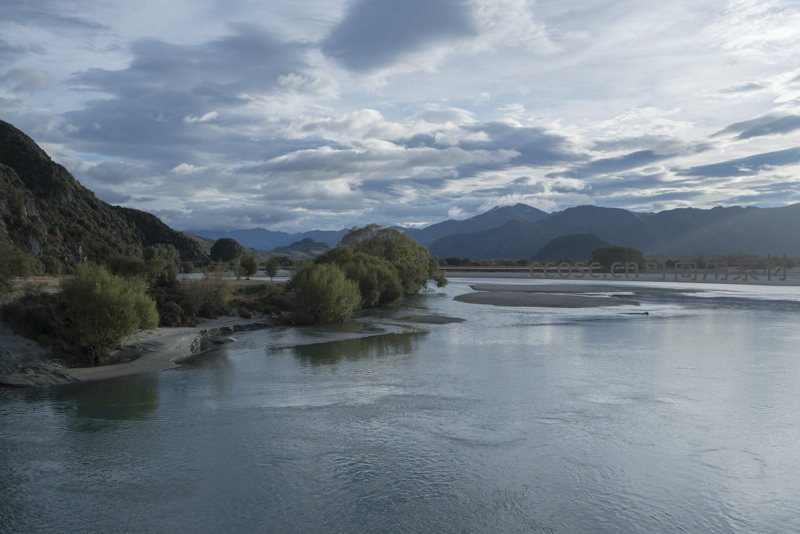 宽阔河谷穿山而过,沙洲绿岛点缀其间