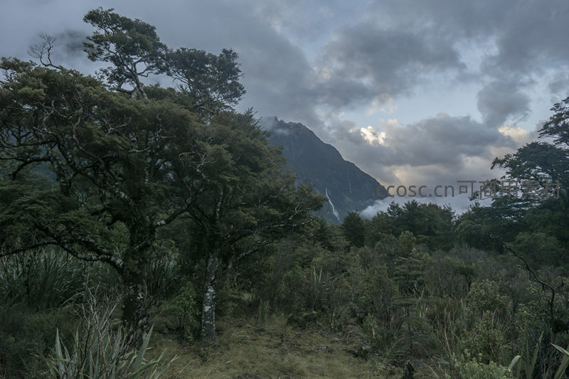 林间仰望云海山峰,绿意盎然生机勃勃