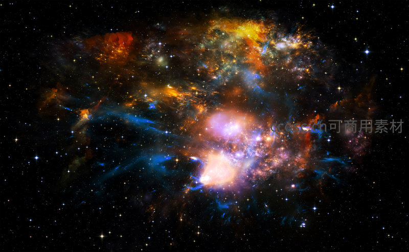 炽热的气体与星际尘埃交织成壮丽的星云结构,橙红、蓝紫与白色光芒相互辉映,展现出宇宙深处令人惊叹的艺术画卷。