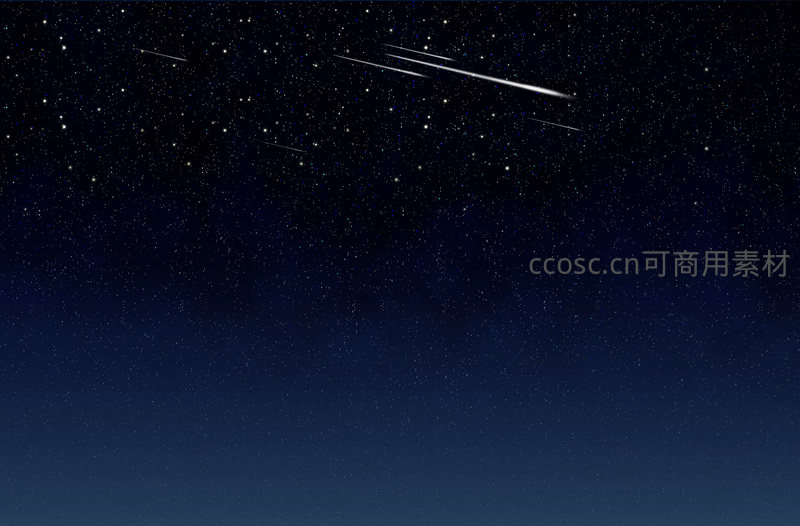 深蓝色的夜空中繁星密布,几颗明亮的流星拖着长长的光尾瞬间划过天际,留下令人惊叹的美丽轨迹。