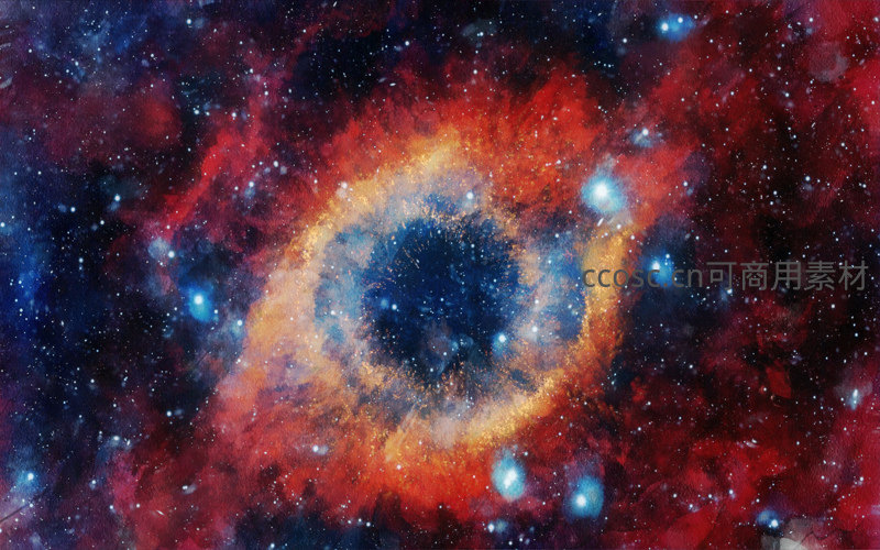 中心深蓝、边缘橙红的环状星云宛如一只巨大的宇宙之眼,凝视着远方,神秘而庄严,象征宇宙的未知与深邃。