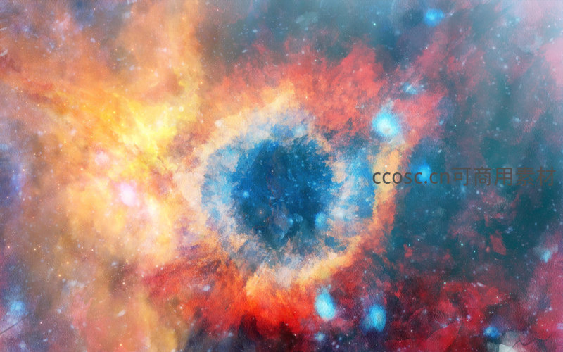 炽热的橙红色星云如火焰般包围着深邃的蓝色核心,仿佛宇宙中的巨大熔炉,散发出强烈的能量感和视觉冲击力,震撼人心。