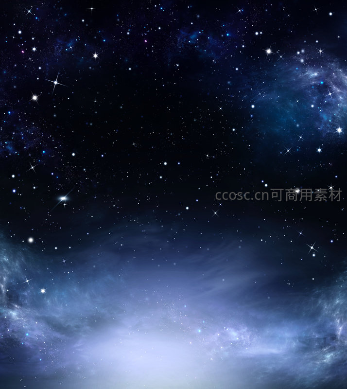 一片宁静而深邃的夜空,无数闪烁的星辰如同钻石般散落,下方是朦胧的蓝色星云,整个画面散发着梦幻般的宁静气息,仿佛能让人沉浸其中。