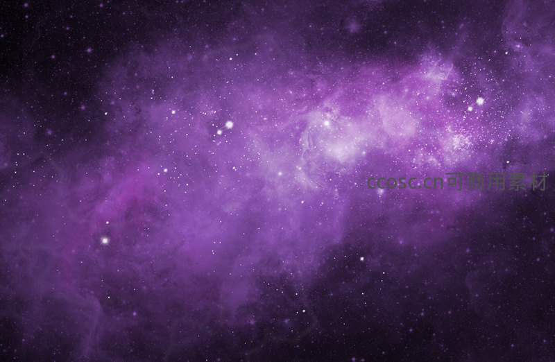 浓郁的紫色星云在黑暗宇宙中延展,点点繁星如散落的宝石,构成一幅宁静而壮丽的太空画卷,充满未来感。