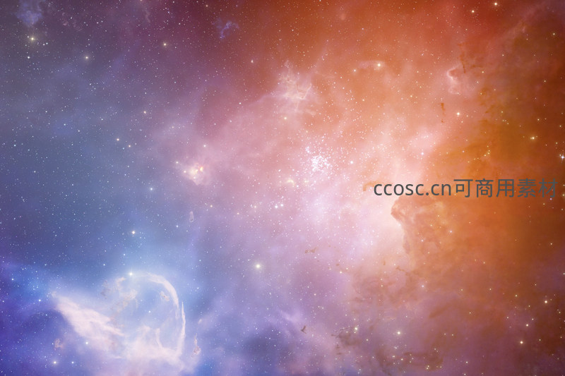 温暖的橙色与清冷的蓝色星云在宇宙深处交汇融合,繁星点点,构成一幅壮丽而神秘的天体画卷。