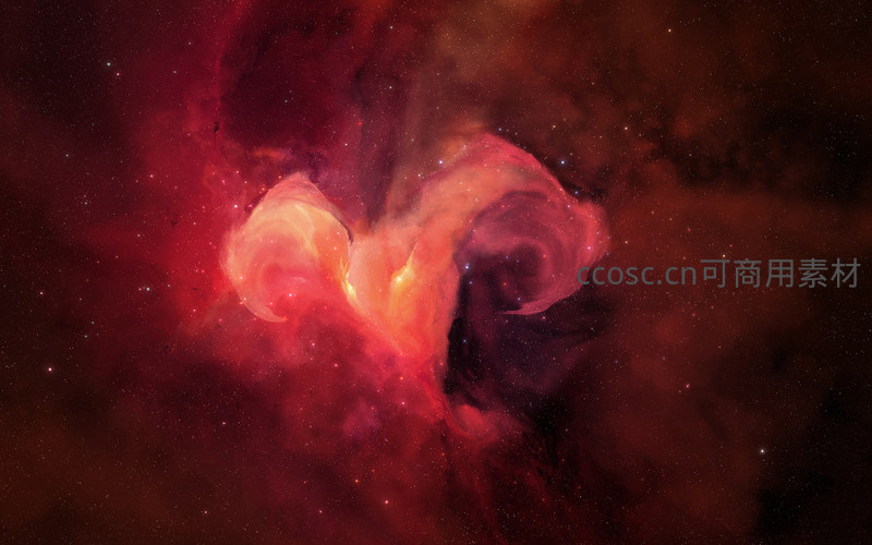 一团炽热的红色星云呈现出完美的心形轮廓,内部透出温暖的橙黄色光芒,周围点缀着微小星辰,象征着宇宙中永恒而炽热的爱意。