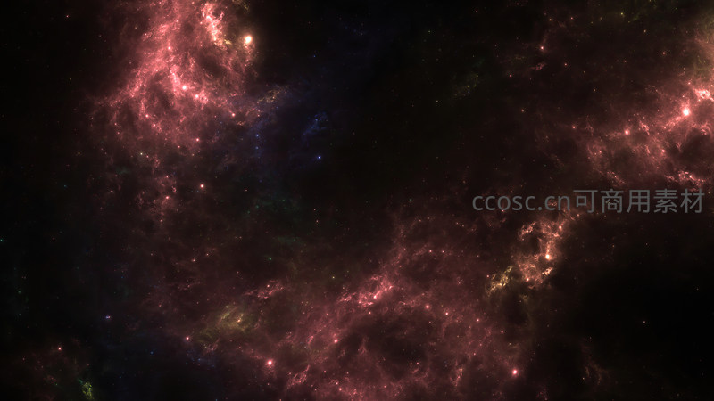 炽热的红色星云在宇宙深处缓缓扩散,与暗黑空间形成强烈对比,点缀着微光星辰,仿佛置身于一场宏大而神秘的星际梦境之中。