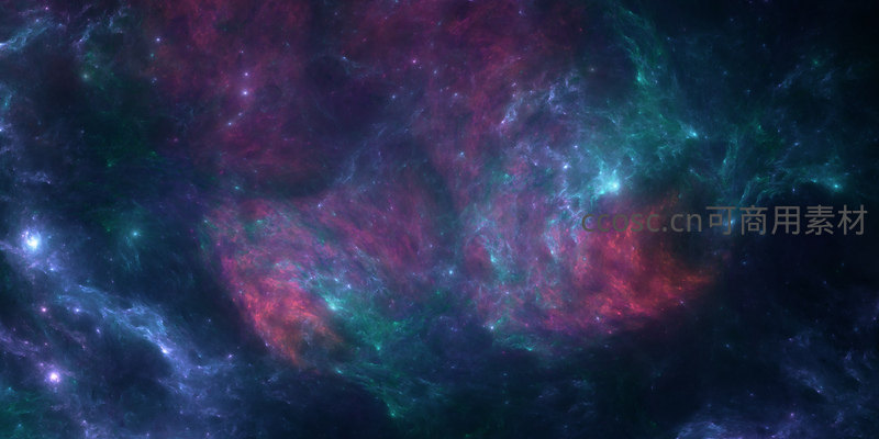 绚烂星云在深空爆发,红色与绿色光芒激烈碰撞,如宇宙中的风暴,充满能量与奇幻色彩。