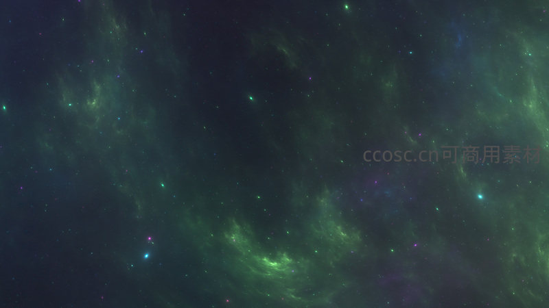 宇宙深处弥漫着大片翠绿色星云,星光零星散布,静谧而神秘,仿佛是宇宙深处未被探索的秘密花园。