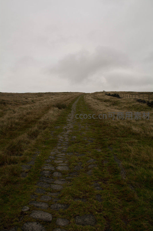 苍茫天地间一条石路通向远方地平线