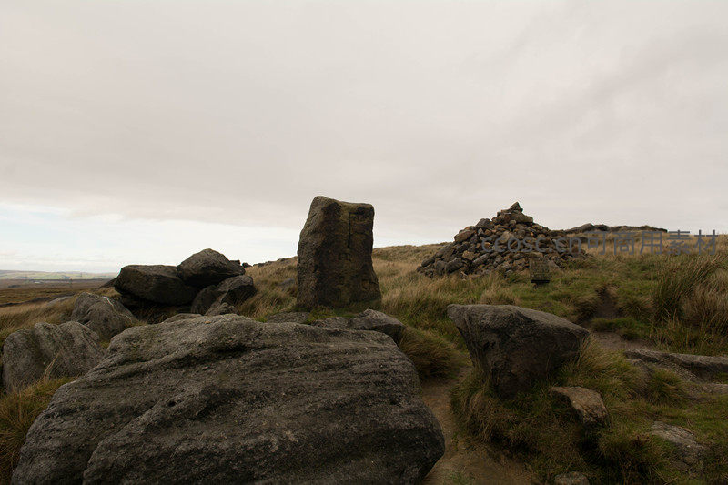 山顶巨石阵旁的古老石堆与小径