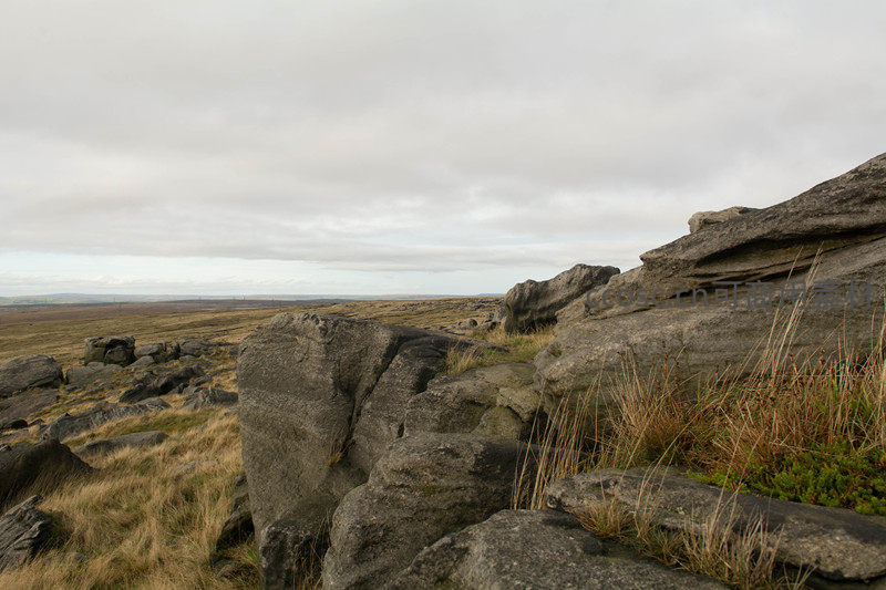 前景是粗粝的灰色岩壁,背景则是无垠的高原大地,云层低垂,天地间空旷寂寥,凸显大自然的雄浑与原始力量。