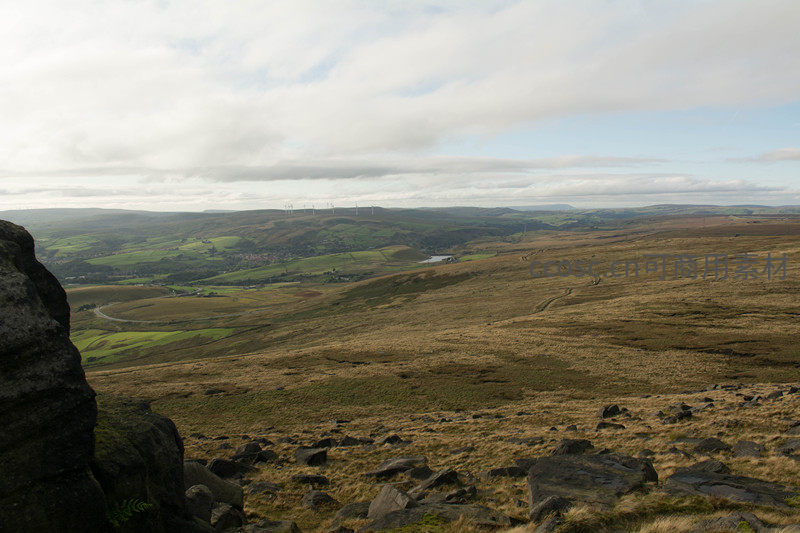 风车点缀的辽阔高原全景