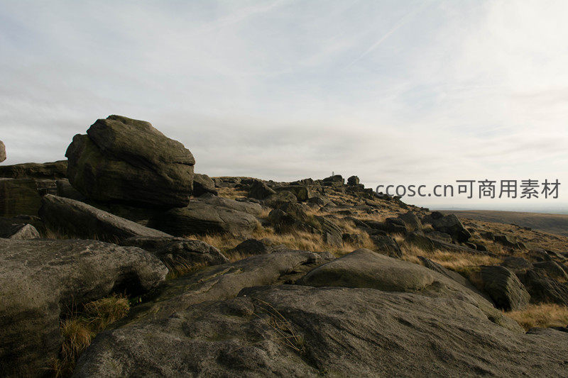 粗糙的岩石表面与稀疏顽强的植被共同勾勒出大地的肌理,柔和的天光下层次分明,展现出自然界力量与时间雕琢的永恒美感。