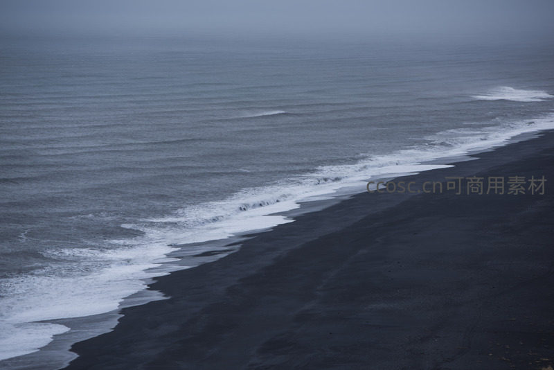 雾锁海岸,浪吻黑沙