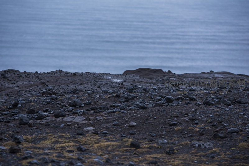 广阔无垠的火山碎石海岸,地面散布大小不一的黑色岩石,远方海天一色,尽显大自然的粗犷与宏伟。