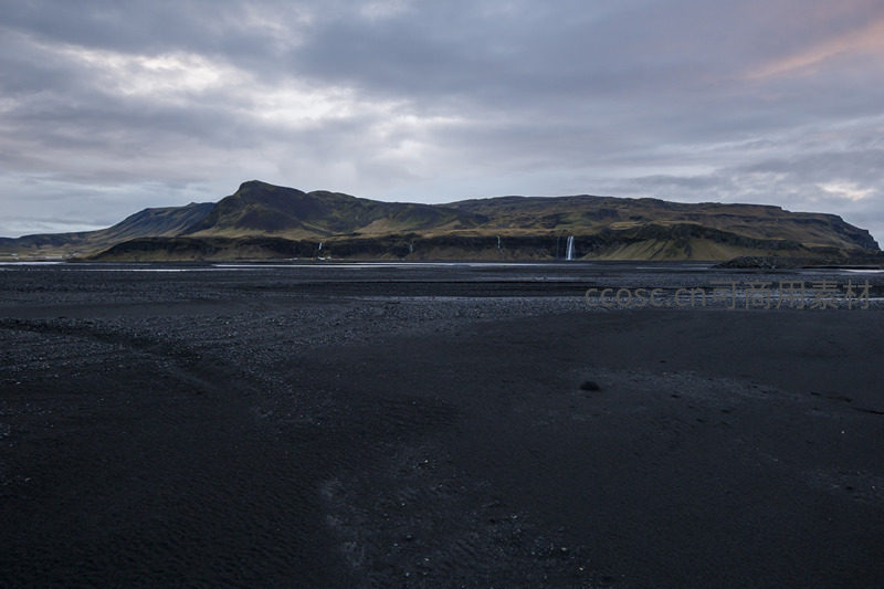 黑沙滩前的瀑布山景